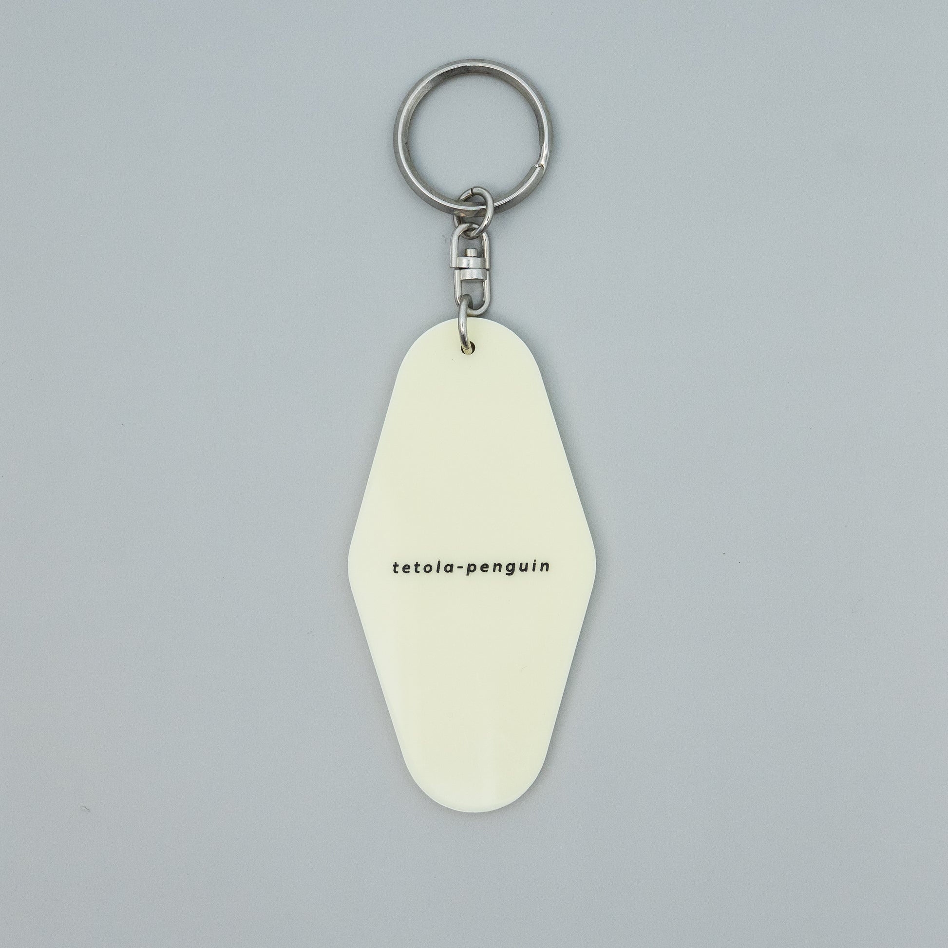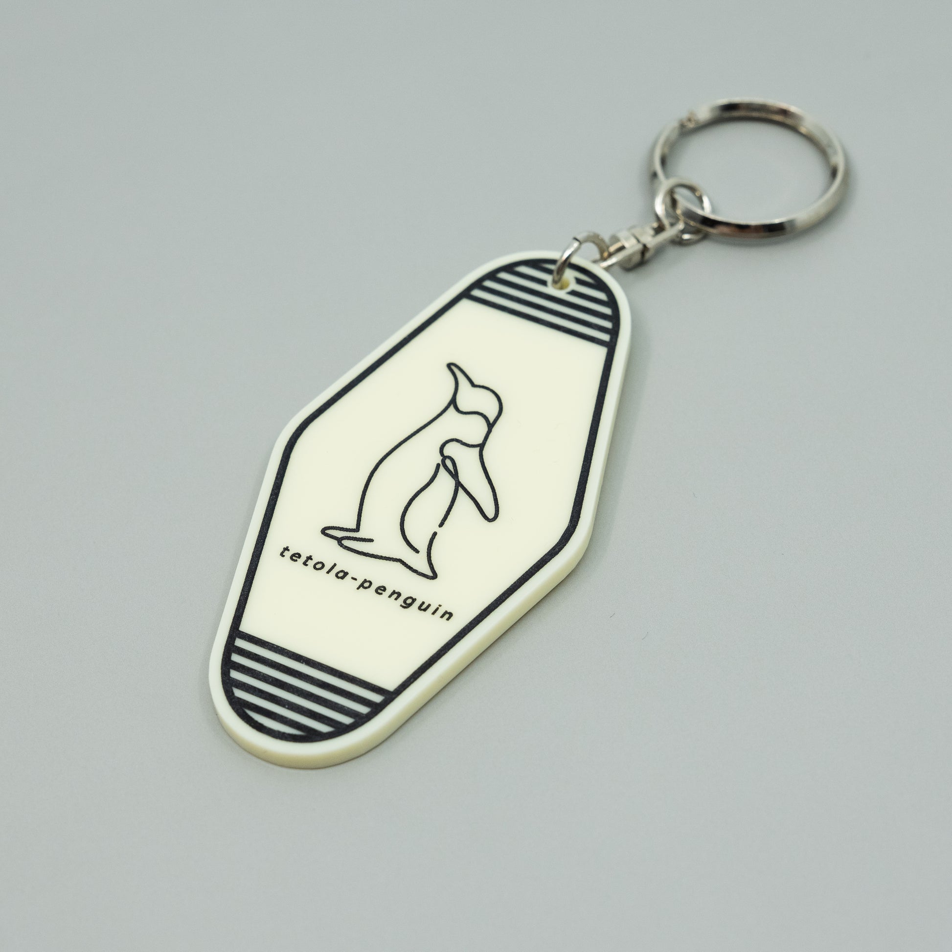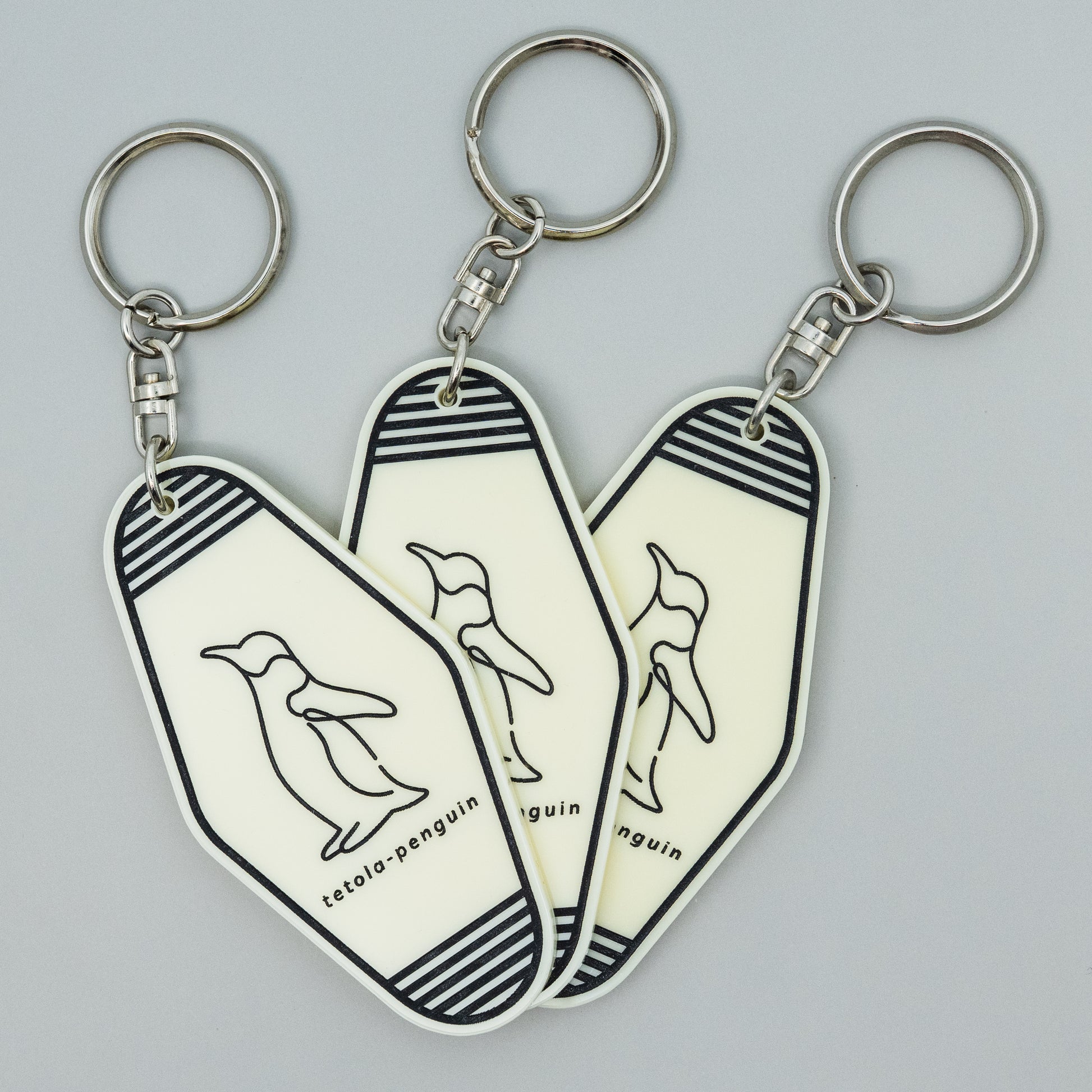 tetola-penguinのロゴを彫った、アクリルモーテルキーホルダー